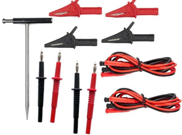 nadajnik 2szt. , odbiornik, futerał, zaciski krokodylkowe 4 szt., przewody pomiarowe 4 szt.,sondy pomiarowe 4 szt., bolec uziemiający , baterie ,instrukcja obsługi , pisemna karta gwarancyjna 24 m-ce.